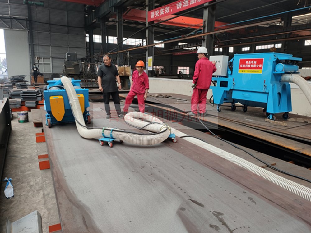 客戶訂購的移動式鋼板拋丸機 調試現場除銹效果